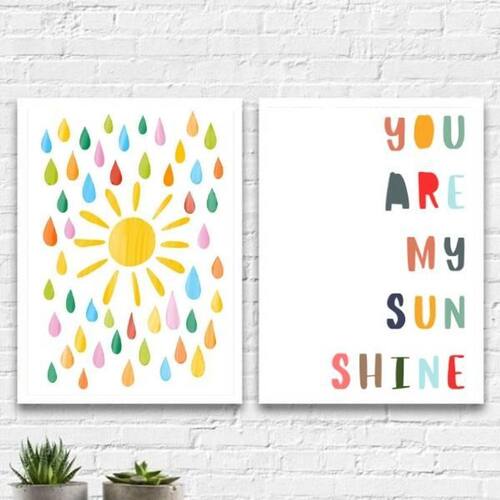 Kit 2 quadros infantis my sunshine 45x34cm - com vidro Moldura: madeira preta Informações do produto tire todas as suas dúvidas no descritivo abaixo: decoração para quarto, sala, cozinha, escritório, área gourmet e muito mais. Chega de paredes vazias medidas - cada peça tem 45x34cm a3 . Material do papel - papel fotográfico brilhante de altíssima resolução acabamento - todos os quadros são acompanhados de vidro para proteção da imagem. - moldura em madeira maciça na cor preta e pendurador . - os quadros são embalados de forma segura com plástico bolha com camada dupla de acordo com o tamanho dos quadros. - de 3 meses. Meu quadro chegou. Como posso fixá-lo Você precisa apenas de um martelo e um prego, pois os quadros já vão acompanhados de penduradores. Esta é a forma mais indicada. Como posso limpar meu quadro A limpeza é feita como um móvel comum da sua casa. Apenas um pano seco ou espanador são suficientes para tal