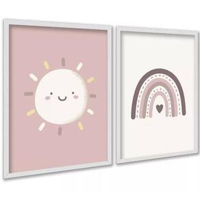 Kit 2 quadros infantis sol e arco-íris rosê 33x24cm Cor: moldura preta Informações do produto tire todas as suas dúvidas no descritivo abaixo: decoração para quarto, sala, cozinha, escritório, área gourmet e muito mais. Chega de paredes vazias medidas - cada peça tem 33x24cm a4 . Material do papel - papel fotográfico brilhante de altíssima resolução acabamento - todos os quadros são acompanhados de uma película de acetato para proteção da imagem. - os quadros são embalados de forma segura com plástico bolha com camada dupla de acordo com o tamanho dos quadros. - de 3 meses. Meu quadro chegou. Como posso fixá-lo Você precisa apenas de um martelo e um prego, pois os quadros já vão acompanhados de penduradores. Esta é a forma mais indicada. Caso prefira, você pode utilizar uma fita dupla face neste caso, sugerimos de alta qualidade para evitar que descole e seu quadro caia . Como posso limpar meu quadro A limpeza é feita como um móvel comum da sua casa. Apenas um pano seco ou espanador são suficientes para tal Marca: Não Informado