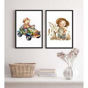 Kit 2 quadros infantis vintage unissex 24x18cm Moldura: madeira preta Informações do produto tire todas as suas dúvidas no descritivo abaixo: decoração para quarto, sala, cozinha, escritório, área gourmet e muito mais. Chega de paredes vazias medidas - cada peça tem 24x18cm a5 . Material do papel - papel fotográfico brilhante de altíssima resolução acabamento - todos os quadros são acompanhados de uma película de acetato para proteção da imagem. - os quadros são embalados de forma segura com plástico bolha com camada dupla de acordo com o tamanho dos quadros. Garantia - garantia de 3 meses. Meu quadro chegou. Como posso fixá-lo Você precisa apenas de um martelo e um prego, pois os quadros já vão acompanhados de penduradores. Esta é a forma mais indicada. Caso prefira, você pode utilizar uma fita dupla face neste caso, sugerimos de alta qualidade para evitar que descole e seu quadro caia . Como posso limpar meu quadro A limpeza é feita como um móvel comum da sua casa. Apenas um pano seco ou espanador são suficientes para tal Ean: 7896430867589
