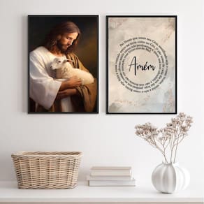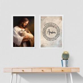 Kit 2 Quadros Jesus Com Ovelha - Pai Nosso 24X18Cm - Vidro