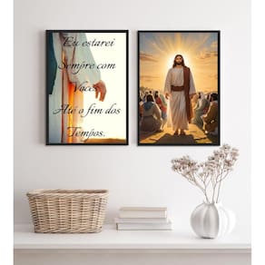 Kit 2 Quadros Jesus- Eu Estarei Sempre Com Vocês 33X24Cm