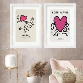 Kit 2 quadros keith haring coração - 60x48cm Moldura: madeira branca Informações do produto tire todas as suas dúvidas no descritivo abaixo: decoração para quarto, sala, cozinha, escritório, área gourmet e muito mais. Chega de paredes vazias medidas - cada peça tem 60x48cm . Material do papel - papel fotográfico brilhante de altíssima resolução acabamento - todos os quadros são acompanhados de vidro para proteção da imagem. - moldura em madeira maciça na cor preta ou branca conforme produto escolhido e pendurador. - paspatur branco com 7cm de largura - os quadros são embalados de forma segura com plástico bolha com camada dupla de acordo com o tamanho dos quadros. Garantia - garantia de 3 meses. Meu quadro chegou. Como posso fixá-lo Você precisa apenas de um martelo e um prego, pois os quadros já vão acompanhados de penduradores. Esta é a forma mais indicada. Como posso limpar meu quadro A limpeza é feita como um móvel comum da sua casa. Apenas um pano seco ou espanador são suficientes para tal