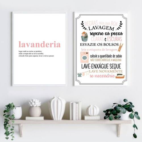 Kit 2 quadros lavanderia soft - rosa 24x18cm - com vidro Moldura: madeira preta Informações do produto tire todas as suas dúvidas no descritivo abaixo: decoração para quarto, sala, cozinha, escritório, área gourmet e muito mais. Chega de paredes vazias medidas - cada peça tem 24x18cm a5 . Material do papel - papel fotográfico brilhante de altíssima resolução acabamento - todos os quadros são acompanhados de vidro para proteção da imagem. - moldura em madeira maciça na cor preta ou branca conforme produto escolhido e pendurador . - os quadros são embalados de forma segura com plástico bolha com camada dupla de acordo com o tamanho dos quadros. Garantia - garantia de 3 meses. Meu quadro chegou. Como posso fixá-lo Você precisa apenas de um martelo e um prego, pois os quadros já vão acompanhados de penduradores. Esta é a forma mais indicada. Como posso limpar meu quadro A limpeza é feita como um móvel comum da sua casa. Apenas um pano seco ou espanador são suficientes para tal