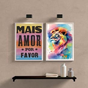 O Kit 2 Quadros Leão Aquarela Mais Amor Por Favor 24X18Cm é perfeito para decorar qualquer ambiente, seja ele quarto, sala, cozinha, escritório, área gourmet e muito mais. Com medidas de 24x18cm A5 , cada peça é feita em papel fotográfico brilhante de altíssima resolução, garantindo uma qualidade excepcional.