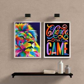 O Kit 2 Quadros Leão Colorido Change The Game 33X24Cm - Vidro é perfeito para quem busca uma decoração moderna e cheia de personalidade. Com um design incrível, esses quadros vão transformar qualquer ambiente, seja quarto, sala, cozinha, escritório, área gourmet e muito mais.