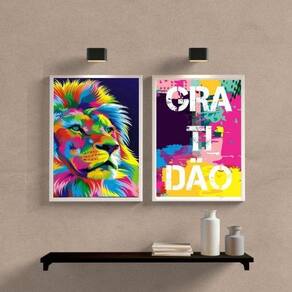O Kit 2 Quadros Leão Colorido Gratidão é perfeito para decorar qualquer ambiente da sua casa, como quarto, sala, cozinha, escritório, área gourmet e muito mais. Chega de paredes vazias!