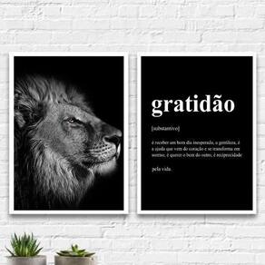 Kit 2 Quadros Leão Gratidão Significado 33X24Cm - Com Vidro