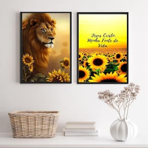 O Kit 2 Quadros Leão Jesus Cristo Girassóis 24X18Cm - Vidro é perfeito para decorar diversos ambientes, como quarto, sala, cozinha, escritório, área gourmet e muito mais. Com medidas de 24x18cm A5 , cada peça é produzida em papel fotográfico brilhante de altíssima resolução, proporcionando uma imagem nítida e de qualidade.