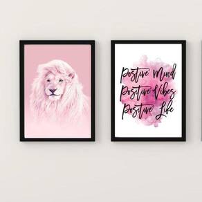 Garanta já o seu Kit 2 Quadros Leão Rosa Positive Vibes 33X24Cm e deixe sua decoração ainda mais charmosa e inspiradora.