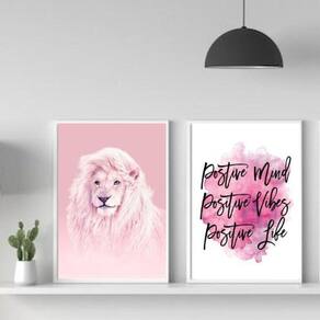 Garanta já o seu Kit 2 Quadros Leão Rosa Positive Vibes 33X24Cm e deixe sua decoração ainda mais charmosa e inspiradora.