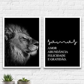 Não deixe suas paredes vazias e sem vida. Adquira agora mesmo o Kit 2 Quadros Leão Somos Amor 33X24Cm e transforme a decoração da sua casa com muito estilo e personalidade.