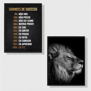 Com esse Kit 2 Quadros Motivacionais Leão Sucesso, você terá uma decoração única e inspiradora em sua casa ou escritório. Não deixe suas paredes vazias e adquira já esse kit de quadros de alta qualidade. Garanta já o seu! Ean: 7899149751712