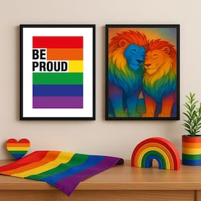 Kit 2 Quadros LGBT GAY - Leões Be Proud 33x24cm - Cor: Moldura preta