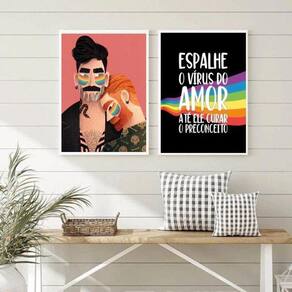 O Kit 2 Quadros LGBT Gays Espalhe o Vírus do Amor 45x34cm é perfeito para decorar qualquer ambiente, seja quarto, sala, cozinha, escritório, área gourmet e muito mais. Chega de paredes vazias!