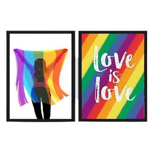 Kit 2 quadros lgbt love is love 24x18cm - com vidro Moldura: madeira preta Informações do produto Decoração para quarto, sala, cozinha, escritório, área gourmet e muito mais. Chega de paredes vazias Medidas - cada peça tem 24x18cm a5 . Material do papel - papel fotográfico brilhante de altíssima resolução Acabamento - todos os quadros são acompanhados de vidro para proteção da imagem. - moldura em madeira maciça na cor preta e pendurador . - os quadros são embalados de forma segura com plástico bolha com camada dupla de acordo com o tamanho dos quadros. - de 3 meses. Meu quadro chegou. Como posso fixá-lo Você precisa apenas de um martelo e um prego, pois os quadros já vão acompanhados de penduradores. Esta é a forma mais indicada. Como posso limpar meu quadro A limpeza é feita como um móvel comum da sua casa. Apenas um pano seco ou espanador são suficientes para tal