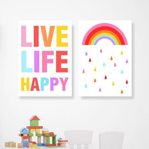 Kit 2 Quadros Live Life Happy 24X18Cm Moldura Branca