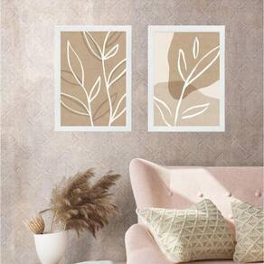 Kit 2 quadros minimalista bege - simple leaf 33x24cm - com vidro Moldura: madeira preta Informações do produto tire todas as suas dúvidas no descritivo abaixo: decoração para quarto, sala, cozinha, escritório, área gourmet e muito mais. Chega de paredes vazias medidas - cada peça tem 33x24cm a4 . Material do papel - papel fotográfico brilhante de altíssima resolução acabamento - todos os quadros são acompanhados de vidro para proteção da imagem. - moldura em madeira maciça na cor preta ou branca conforme produto escolhido e pendurador . - os quadros são embalados de forma segura com plástico bolha com camada dupla de acordo com o tamanho dos quadros. Garantia - garantia de 3 meses. Meu quadro chegou. Como posso fixá-lo Você precisa apenas de um martelo e um prego, pois os quadros já vão acompanhados de penduradores. Esta é a forma mais indicada. Como posso limpar meu quadro A limpeza é feita como um móvel comum da sua casa. Apenas um pano seco ou espanador são suficientes para tal
