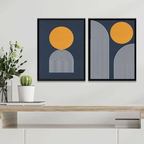 Kit 2 Quadros Minimalistas Abstratos Azul E Amarelo 33X24Cm