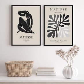 Kit 2 Quadros Minimalistas Preto e Cinza Matisse 33x24cm
