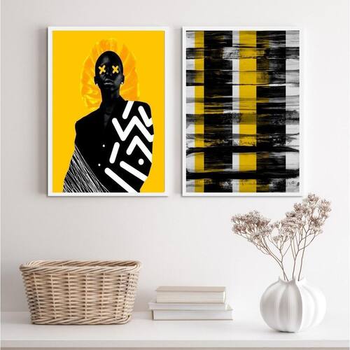Garanta já o Kit 2 Quadros Modernos Preto e Amarelo Mulher Abstrato para decorar seu ambiente com estilo e bom gosto. Compre agora e deixe suas paredes mais bonitas e cheias de personalidade. Marca: Não Informado