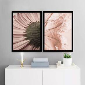 Kit 2 quadros modernos flor e folha rosê 45x34cm - com vidro Cor: moldura preta Informações do produto tire todas as suas dúvidas no descritivo abaixo: decoração para quarto, sala, cozinha, escritório, área gourmet e muito mais. Chega de paredes vazias medidas - cada peça tem 45x34cm a3 . Material do papel - papel fotográfico brilhante de altíssima resolução acabamento - todos os quadros são acompanhados de vidro para proteção da imagem. - moldura em madeira maciça na cor preta ou branca conforme produto escolhido e pendurador . - os quadros são embalados de forma segura com plástico bolha com camada dupla de acordo com o tamanho dos quadros. Garantia - garantia de 3 meses. Meu quadro chegou. Como posso fixá-lo Você precisa apenas de um martelo e um prego, pois os quadros já vão acompanhados de penduradores. Esta é a forma mais indicada. Como posso limpar meu quadro A limpeza é feita como um móvel comum da sua casa. Apenas um pano seco ou espanador são suficientes para tal