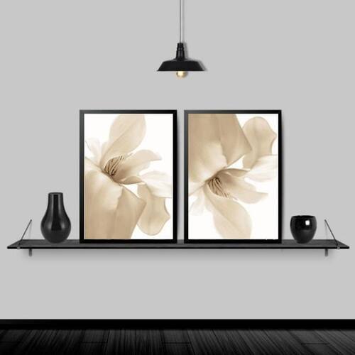 Kit 2 quadros modernos flores brancas 33x24cm Moldura: madeira preta Informações do produto Decoração para quarto, sala, cozinha, escritório, área gourmet e muito mais. Chega de paredes vazias Medidas - cada peça tem 33x24cm a4 . Material do papel - papel fotográfico brilhante de altíssima resolução Acabamento - todos os quadros são acompanhados de uma película de acetato para proteção da imagem. - Os quadros são embalados de forma segura com plástico bolha com camada dupla de acordo com o tamanho dos quadros. - de 3 meses. Meu quadro chegou. Como posso fixá-lo Você precisa apenas de um martelo e um prego, pois os quadros já vão acompanhados de penduradores. Esta é a forma mais indicada. Caso prefira, você pode utilizar uma fita dupla face neste caso, sugerimos de alta qualidade para evitar que descole e seu quadro caia . Como posso limpar meu quadro A limpeza é feita como um móvel comum da sua casa. Apenas um pano seco ou espanador são suficientes para tal