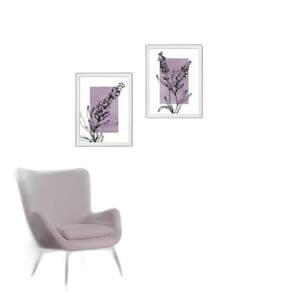 Kit 2 Quadros Modernos Lavanda - Planta 33X24Cm