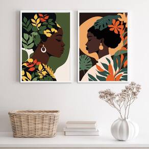 O Kit 2 Quadros Mulheres Black African Woman 24X18Cm - Vidro é perfeito para quem busca uma decoração única e cheia de personalidade. Com moldura de madeira preta, esses quadros são ideais para decorar seu quarto, sala, cozinha, escritório, área gourmet e muito mais.