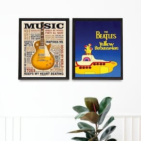 Kit 2 Quadros Music Life - Yellow Submarine 33X24Cm