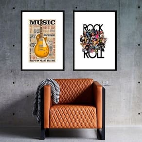 Kit 2 quadros music rock - 60x48cm Moldura: madeira preta Informações do produto tire todas as suas dúvidas no descritivo abaixo: decoração para quarto, sala, cozinha, escritório, área gourmet e muito mais. Chega de paredes vazias medidas - cada peça tem 60x48cm . Material do papel - papel fotográfico brilhante de altíssima resolução acabamento - todos os quadros são acompanhados de vidro para proteção da imagem. - moldura em madeira maciça na cor preta ou branca conforme produto escolhido e pendurador. - paspatur branco com 7cm de largura - os quadros são embalados de forma segura com plástico bolha com camada dupla de acordo com o tamanho dos quadros. Garantia - garantia de 3 meses. Meu quadro chegou. Como posso fixá-lo Você precisa apenas de um martelo e um prego, pois os quadros já vão acompanhados de penduradores. Esta é a forma mais indicada. Como posso limpar meu quadro A limpeza é feita como um móvel comum da sua casa. Apenas um pano seco ou espanador são suficientes para tal
