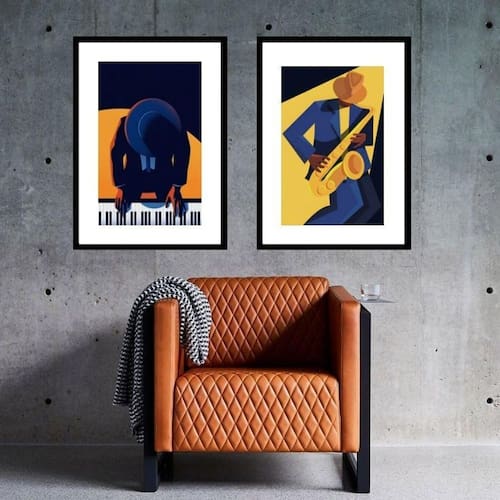 Kit 2 quadros músicos jazz - 60x48cm Moldura: madeira branca Informações do produto tire todas as suas dúvidas no descritivo abaixo: decoração para quarto, sala, cozinha, escritório, área gourmet e muito mais. Chega de paredes vazias medidas - cada peça tem 60x48cm . Material do papel - papel fotográfico brilhante de altíssima resolução acabamento - todos os quadros são acompanhados de vidro para proteção da imagem. - moldura em madeira maciça na cor preta ou branca conforme produto escolhido e pendurador. - paspatur branco com 7cm de largura - os quadros são embalados de forma segura com plástico bolha com camada dupla de acordo com o tamanho dos quadros. Garantia - garantia de 3 meses. Meu quadro chegou. Como posso fixá-lo Você precisa apenas de um martelo e um prego, pois os quadros já vão acompanhados de penduradores. Esta é a forma mais indicada. Como posso limpar meu quadro A limpeza é feita como um móvel comum da sua casa. Apenas um pano seco ou espanador são suficientes para tal Ean: 7899890213132