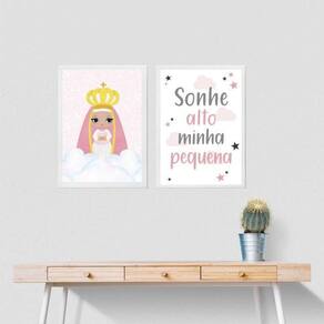 Kit 2 quadros nossa senhora baby 45x34cm - com vidro Moldura: madeira branca Informações do produto tire todas as suas dúvidas no descritivo abaixo: decoração para quarto, sala, cozinha, escritório, área gourmet e muito mais. Chega de paredes vazias medidas - cada peça tem 45x34cm a3 . Material do papel - papel fotográfico brilhante de altíssima resolução acabamento - todos os quadros são acompanhados de vidro para proteção da imagem. - moldura em madeira maciça na cor preta ou branca conforme produto escolhido e pendurador . - os quadros são embalados de forma segura com plástico bolha com camada dupla de acordo com o tamanho dos quadros. Garantia - garantia de 3 meses. Meu quadro chegou. Como posso fixá-lo Você precisa apenas de um martelo e um prego, pois os quadros já vão acompanhados de penduradores. Esta é a forma mais indicada. Como posso limpar meu quadro A limpeza é feita como um móvel comum da sua casa. Apenas um pano seco ou espanador são suficientes para tal