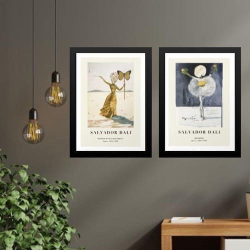 Kit 2 quadros obras salvador dalí - mulheres 24x18cm - com vidro Moldura: madeira preta Informações do produto tire todas as suas dúvidas no descritivo abaixo: decoração para quarto, sala, cozinha, escritório, área gourmet e muito mais. Chega de paredes vazias medidas - cada peça tem 24x18cm a5 . Material do papel - papel fotográfico brilhante de altíssima resolução acabamento - todos os quadros são acompanhados de vidro para proteção da imagem. - moldura em madeira maciça na cor preta ou branca conforme produto escolhido e pendurador . - os quadros são embalados de forma segura com plástico bolha com camada dupla de acordo com o tamanho dos quadros. Garantia - garantia de 3 meses. Meu quadro chegou. Como posso fixá-lo Você precisa apenas de um martelo e um prego, pois os quadros já vão acompanhados de penduradores. Esta é a forma mais indicada. Como posso limpar meu quadro A limpeza é feita como um móvel comum da sua casa. Apenas um pano seco ou espanador são suficientes para tal