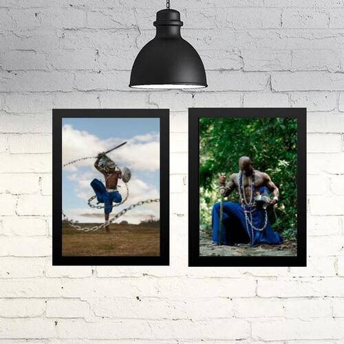 Kit 2 quadros ogum - menino e homem 45x34cm - com vidro Moldura: madeira preta Informações do produto tire todas as suas dúvidas no descritivo abaixo: decoração para quarto, sala, cozinha, escritório, área gourmet e muito mais. Chega de paredes vazias medidas - cada peça tem 45x34cm a3 . Material do papel - papel fotográfico brilhante de altíssima resolução acabamento - todos os quadros são acompanhados de vidro para proteção da imagem. - moldura em madeira maciça na cor preta ou branca conforme produto escolhido e pendurador . - os quadros são embalados de forma segura com plástico bolha com camada dupla de acordo com o tamanho dos quadros. Garantia - garantia de 3 meses. Meu quadro chegou. Como posso fixá-lo Você precisa apenas de um martelo e um prego, pois os quadros já vão acompanhados de penduradores. Esta é a forma mais indicada. Como posso limpar meu quadro A limpeza é feita como um móvel comum da sua casa. Apenas um pano seco ou espanador são suficientes para tal Ean: 7892393315167