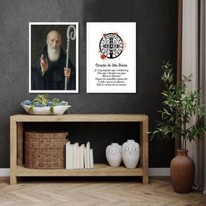 Kit 2 quadros oração de são bento 45x34cm - com vidro