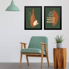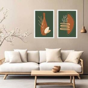 Kit 2 quadros orgânicos terracota e verde musgo 45x34cm - com vidro Moldura: madeira preta Informações do produto tire todas as suas dúvidas no descritivo abaixo: decoração para quarto, sala, cozinha, escritório, área gourmet e muito mais. Chega de paredes vazias medidas - cada peça tem 45x34cm a3 . Material do papel - papel fotográfico brilhante de altíssima resolução acabamento - todos os quadros são acompanhados de vidro para proteção da imagem. - moldura em madeira maciça na cor preta ou branca conforme produto escolhido e pendurador . - os quadros são embalados de forma segura com plástico bolha com camada dupla de acordo com o tamanho dos quadros. - de 3 meses. Meu quadro chegou. Como posso fixá-lo Você precisa apenas de um martelo e um prego, pois os quadros já vão acompanhados de penduradores. Esta é a forma mais indicada. Como posso limpar meu quadro A limpeza é feita como um móvel comum da sua casa. Apenas um pano seco ou espanador são suficientes para tal Marca: Não Informado Ean: 7894760534904