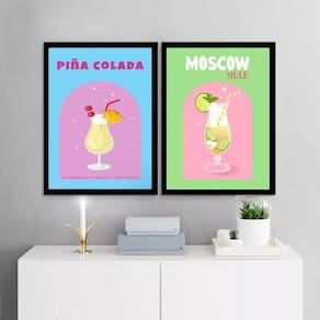 Kit 2 quadros para bar - coquetéis 33x24cm - com vidro Cor: moldura branca Informações do produto tire todas as suas dúvidas no descritivo abaixo: decoração para quarto, sala, cozinha, escritório, área gourmet e muito mais. Chega de paredes vazias medidas - cada peça tem 33x24cm a4 . Material do papel - papel fotográfico brilhante de altíssima resolução acabamento - todos os quadros são acompanhados de vidro para proteção da imagem. - moldura em madeira maciça na cor preta ou branca conforme produto escolhido e pendurador . - os quadros são embalados de forma segura com plástico bolha com camada dupla de acordo com o tamanho dos quadros. - de 3 meses. Meu quadro chegou. Como posso fixá-lo Você precisa apenas de um martelo e um prego, pois os quadros já vão acompanhados de penduradores. Esta é a forma mais indicada. Como posso limpar meu quadro A limpeza é feita como um móvel comum da sua casa. Apenas um pano seco ou espanador são suficientes para tal Ean: 7896448082240