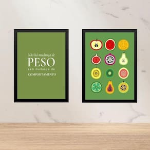 Kit 2 quadros para cozinha - alimentação saudável 45x34cm Cor: moldura preta Informações do produto tire todas as suas dúvidas no descritivo abaixo: decoração para quarto, sala, cozinha, escritório, área gourmet e muito mais. Chega de paredes vazias. Medidas - cada peça tem 45x34cm a3 . Material do papel - papel fotográfico brilhante de altíssima resolução acabamento - todos os quadros são acompanhados de uma película de acetato para proteção da imagem. - os quadros são embalados de forma segura com plástico bolha com camada dupla de acordo com o tamanho dos quadros. Garantia - garantia de 3 meses. Meu quadro chegou. Como posso fixá-lo Você precisa apenas de um martelo e um prego, pois os quadros já vão acompanhados de penduradores. Esta é a forma mais indicada. Caso prefira, você pode utilizar uma fita dupla face neste caso, sugerimos de alta qualidade para evitar que descole e seu quadro caia . Como posso limpar meu quadro A limpeza é feita como um móvel comum da sua casa. Apenas um pano seco ou espanador são suficientes para tal