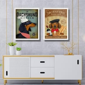 Kit 2 quadros para cozinha dachshund 24x18cm Cor: moldura preta Informações do produto tire todas as suas dúvidas no descritivo abaixo: decoração para quarto, sala, cozinha, escritório, área gourmet e muito mais. Chega de paredes vazias medidas - cada peça tem 24x18cm a5 . Material do papel - papel fotográfico brilhante de altíssima resolução acabamento - todos os quadros são acompanhados de uma película de acetato para proteção da imagem. - os quadros são embalados de forma segura com plástico bolha com camada dupla de acordo com o tamanho dos quadros. Garantia - garantia de 3 meses. Meu quadro chegou. Como posso fixá-lo Você precisa apenas de um martelo e um prego, pois os quadros já vão acompanhados de penduradores. Esta é a forma mais indicada. Caso prefira, você pode utilizar uma fita dupla face neste caso, sugerimos de alta qualidade para evitar que descole e seu quadro caia . Como posso limpar meu quadro A limpeza é feita como um móvel comum da sua casa. Apenas um pano seco ou espanador são suficientes para tal