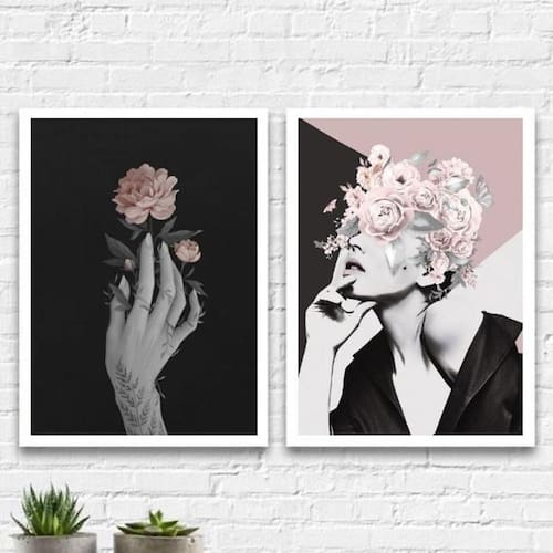 Kit 2 quadros para quarto mulher com flores 45x34cm - com vidro Moldura: madeira preta Informações do produto tire todas as suas dúvidas no descritivo abaixo: decoração para quarto, sala, cozinha, escritório, área gourmet e muito mais. Chega de paredes vazias medidas - cada peça tem 45x34cm a3 . Material do papel - papel fotográfico brilhante de altíssima resolução acabamento - todos os quadros são acompanhados de vidro para proteção da imagem. - moldura em madeira maciça na cor preta e pendurador . - os quadros são embalados de forma segura com plástico bolha com camada dupla de acordo com o tamanho dos quadros. Garantia - garantia de 3 meses. Meu quadro chegou. Como posso fixá-lo Você precisa apenas de um martelo e um prego, pois os quadros já vão acompanhados de penduradores. Esta é a forma mais indicada. Como posso limpar meu quadro A limpeza é feita como um móvel comum da sua casa. Apenas um pano seco ou espanador são suficientes para tal Ean: 7895142238687