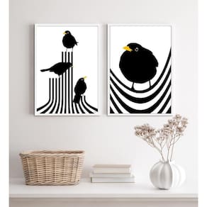 Renove sua decoração com o Kit 2 Quadros Passarinhos Modernos Listras e transforme seu ambiente em um espaço ainda mais bonito e aconchegante. Adquira já!