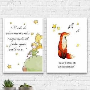 Kit 2 Quadros Pequeno Príncipe Aquarela 33X24Cm - Com Vidro