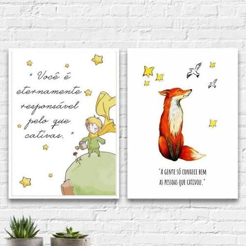 Kit 2 quadros pequeno príncipe aquarela 45x34cm - com vidro Moldura: madeira branca Informações do produto tire todas as suas dúvidas no descritivo abaixo: decoração para quarto, sala, cozinha, escritório, área gourmet e muito mais. Chega de paredes vazias medidas - cada peça tem 45x34cm a3 . Material do papel - papel fotográfico brilhante de altíssima resolução acabamento - todos os quadros são acompanhados de vidro para proteção da imagem. - moldura em madeira maciça na cor preta e pendurador . - os quadros são embalados de forma segura com plástico bolha com camada dupla de acordo com o tamanho dos quadros. - de 3 meses. Meu quadro chegou. Como posso fixá-lo Você precisa apenas de um martelo e um prego, pois os quadros já vão acompanhados de penduradores. Esta é a forma mais indicada. Como posso limpar meu quadro A limpeza é feita como um móvel comum da sua casa. Apenas um pano seco ou espanador são suficientes para tal Marca: Não Informado