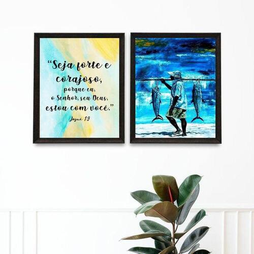 Kit 2 quadros pescador - seja forte e corajoso 24x18cm Moldura: madeira preta Informações do produto tire todas as suas dúvidas no descritivo abaixo: decoração para quarto, sala, cozinha, escritório, área gourmet e muito mais. Chega de paredes vazias medidas - cada peça tem 24x18cm a5 . Material do papel - papel fotográfico brilhante de altíssima resolução acabamento - todos os quadros são acompanhados de uma película de acetato para proteção da imagem. - os quadros são embalados de forma segura com plástico bolha com camada dupla de acordo com o tamanho dos quadros. Garantia - garantia de 3 meses. Meu quadro chegou. Como posso fixá-lo Você precisa apenas de um martelo e um prego, pois os quadros já vão acompanhados de penduradores. Esta é a forma mais indicada. Caso prefira, você pode utilizar uma fita dupla face neste caso, sugerimos de alta qualidade para evitar que descole e seu quadro caia . Como posso limpar meu quadro A limpeza é feita como um móvel comum da sua casa. Apenas um pano seco ou espanador são suficientes para tal