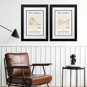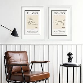 kit 2 Quadros Picasso Cat And Dog- 60x48cm - Moldura: Madeira branca