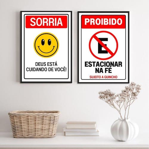 Kit 2 quadros placas cristãs - fé 24x18cm Moldura: madeira branca Informações do produto tire todas as suas dúvidas no descritivo abaixo: decoração para quarto, sala, cozinha, escritório, área gourmet e muito mais. Chega de paredes vazias medidas - cada peça tem 24x18cm a5 . Material do papel - papel fotográfico brilhante de altíssima resolução acabamento - todos os quadros são acompanhados de uma película de acetato para proteção da imagem. - os quadros são embalados de forma segura com plástico bolha com camada dupla de acordo com o tamanho dos quadros. Garantia - garantia de 3 meses. Meu quadro chegou. Como posso fixá-lo Você precisa apenas de um martelo e um prego, pois os quadros já vão acompanhados de penduradores. Esta é a forma mais indicada. Caso prefira, você pode utilizar uma fita dupla face neste caso, sugerimos de alta qualidade para evitar que descole e seu quadro caia . Como posso limpar meu quadro A limpeza é feita como um móvel comum da sua casa. Apenas um pano seco ou espanador são suficientes para tal
