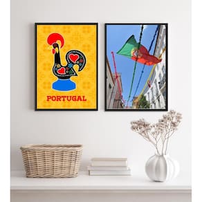 Kit 2 quadros portugal- galo barcelos e bandeira 45x34cm - com vidro Moldura: madeira preta Informações do produto tire todas as suas dúvidas no descritivo abaixo: decoração para quarto, sala, cozinha, escritório, área gourmet e muito mais. Chega de paredes vazias medidas - cada peça tem 45x34cm a3 . Material do papel - papel fotográfico brilhante de altíssima resolução acabamento - todos os quadros são acompanhados de vidro para proteção da imagem. - moldura em madeira maciça na cor preta ou branca conforme produto escolhido e pendurador . - os quadros são embalados de forma segura com plástico bolha com camada dupla de acordo com o tamanho dos quadros. - de 3 meses. Meu quadro chegou. Como posso fixá-lo Você precisa apenas de um martelo e um prego, pois os quadros já vão acompanhados de penduradores. Esta é a forma mais indicada. Como posso limpar meu quadro A limpeza é feita como um móvel comum da sua casa. Apenas um pano seco ou espanador são suficientes para tal Marca: Não Informado