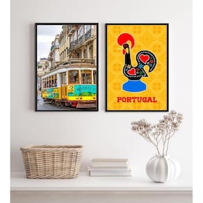 Kit 2 quadros portugal- galo barcelos e bondinho 24x18cm Moldura: madeira preta Informações do produto tire todas as suas dúvidas no descritivo abaixo: decoração para quarto, sala, cozinha, escritório, área gourmet e muito mais. Chega de paredes vazias medidas - cada peça tem 24x18cm a5 . Material do papel - papel fotográfico brilhante de altíssima resolução acabamento - todos os quadros são acompanhados de uma película de acetato para proteção da imagem. - os quadros são embalados de forma segura com plástico bolha com camada dupla de acordo com o tamanho dos quadros. Garantia - garantia de 3 meses. Meu quadro chegou. Como posso fixá-lo Você precisa apenas de um martelo e um prego, pois os quadros já vão acompanhados de penduradores. Esta é a forma mais indicada. Caso prefira, você pode utilizar uma fita dupla face neste caso, sugerimos de alta qualidade para evitar que descole e seu quadro caia . Como posso limpar meu quadro A limpeza é feita como um móvel comum da sua casa. Apenas um pano seco ou espanador são suficientes para tal Ean: 7897289117511