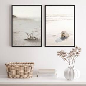 Kit 2 quadros praia branco e bege- concha e estrela 24x18cm Moldura: madeira preta Informações do produto tire todas as suas dúvidas no descritivo abaixo: decoração para quarto, sala, cozinha, escritório, área gourmet e muito mais. Chega de paredes vazias medidas - cada peça tem 24x18cm a5 . Material do papel - papel fotográfico brilhante de altíssima resolução acabamento - todos os quadros são acompanhados de uma película de acetato para proteção da imagem. - os quadros são embalados de forma segura com plástico bolha com camada dupla de acordo com o tamanho dos quadros. Garantia - garantia de 3 meses. Meu quadro chegou. Como posso fixá-lo Você precisa apenas de um martelo e um prego, pois os quadros já vão acompanhados de penduradores. Esta é a forma mais indicada. Caso prefira, você pode utilizar uma fita dupla face neste caso, sugerimos de alta qualidade para evitar que descole e seu quadro caia . Como posso limpar meu quadro A limpeza é feita como um móvel comum da sua casa. Apenas um pano seco ou espanador são suficientes para tal Ean: 7895072177766