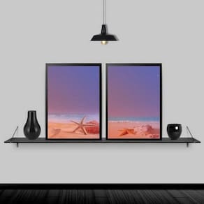Kit 2 quadros praia galáxia estrela 45x34cm - com vidro Moldura: madeira preta Informações do produto tire todas as suas dúvidas no descritivo abaixo: decoração para quarto, sala, cozinha, escritório, área gourmet e muito mais. Chega de paredes vazias medidas - cada peça tem 45x34cm a3 . Material do papel - papel fotográfico brilhante de altíssima resolução acabamento - todos os quadros são acompanhados de vidro para proteção da imagem. - moldura em madeira maciça na cor preta e pendurador . - os quadros são embalados de forma segura com plástico bolha com camada dupla de acordo com o tamanho dos quadros. Garantia - garantia de 3 meses. Meu quadro chegou. Como posso fixá-lo Você precisa apenas de um martelo e um prego, pois os quadros já vão acompanhados de penduradores. Esta é a forma mais indicada. Como posso limpar meu quadro A limpeza é feita como um móvel comum da sua casa. Apenas um pano seco ou espanador são suficientes para tal